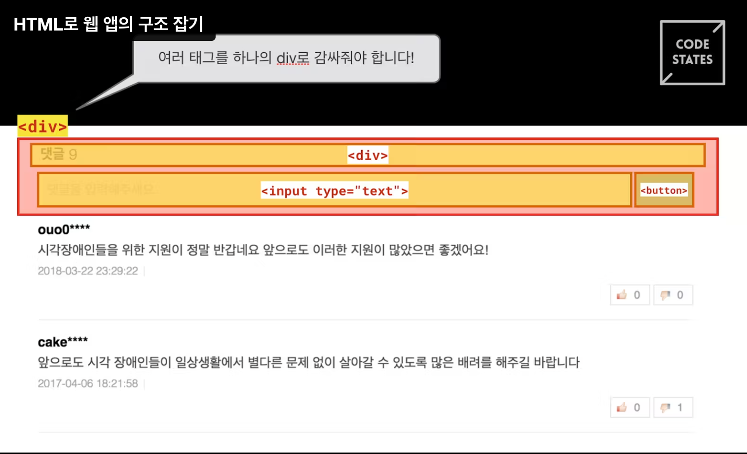 <div> 요소는 보통 아무런 스타일을 지정하지 않고, HTML 구조를 구성하는 데 사용됩니다.